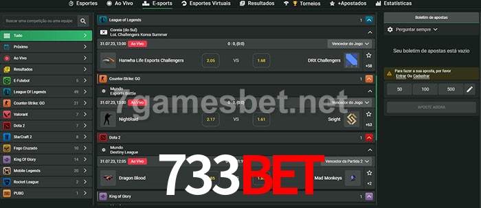 O 733bet oferece uma grande seleção de opções de apostas em e-sports com probabilidades competitivas